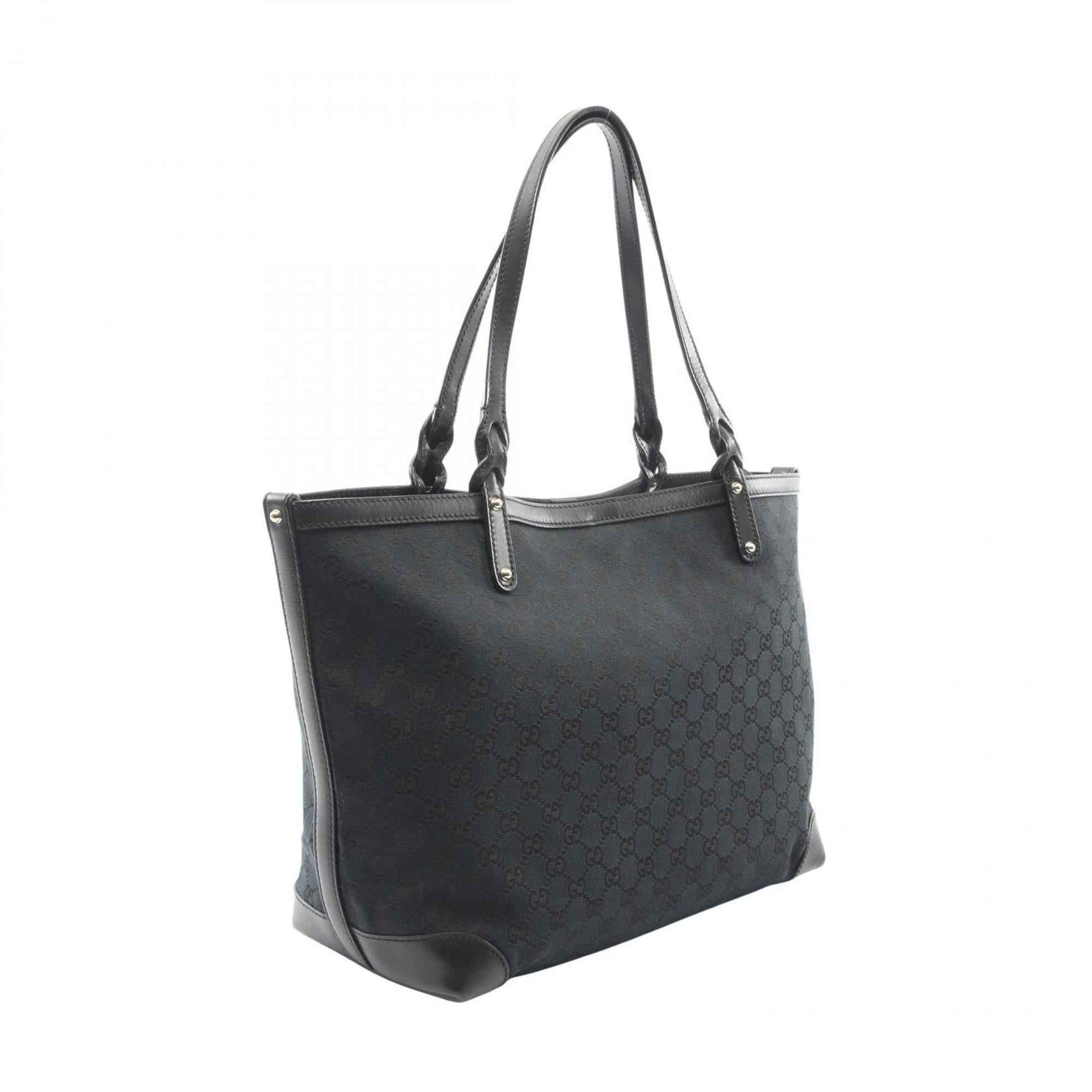 Gucci GG Canvas Tote Bag, and Leather, Women\'s, Black, 247209