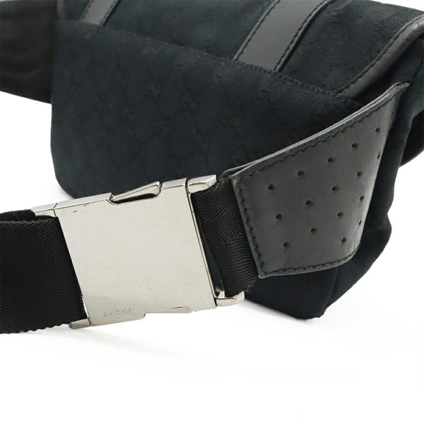 GUCCI GG Canvas Waist Bag/Body Bag/Waist Pouch in Black Leather (145851)