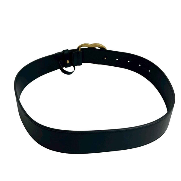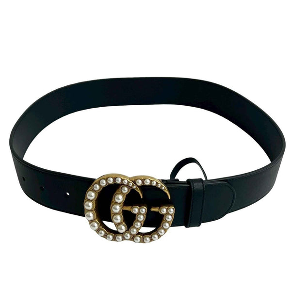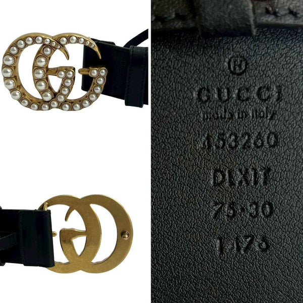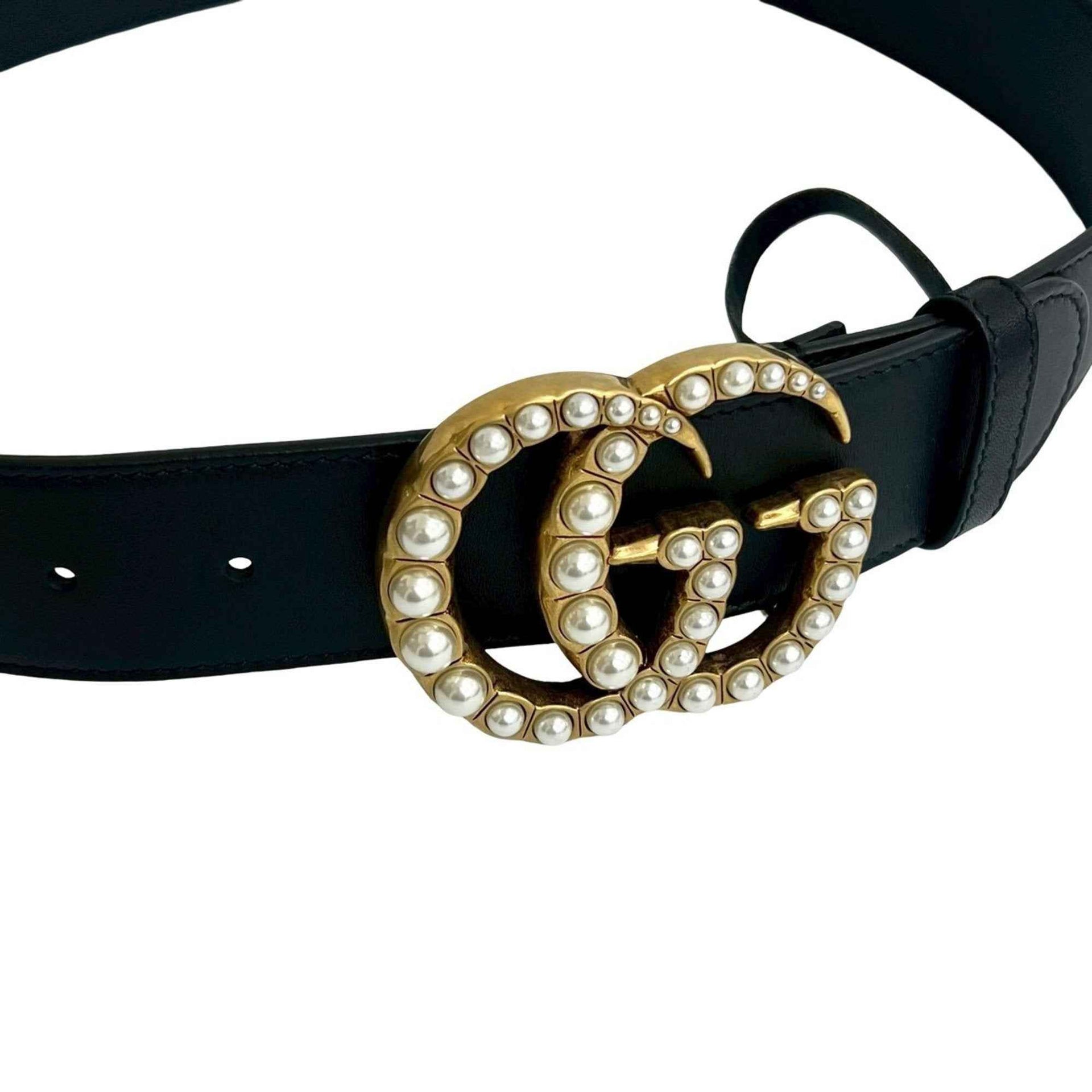 GUCCI GG logo motif metal buckle leather faux pearl belt accessory black 2037j