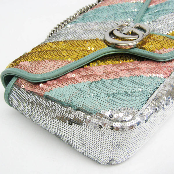 Gucci GG Marmont 443497 Women\'s Leather,Spangles Shoulder Bag Gold,Silver,Pink Gold,Green