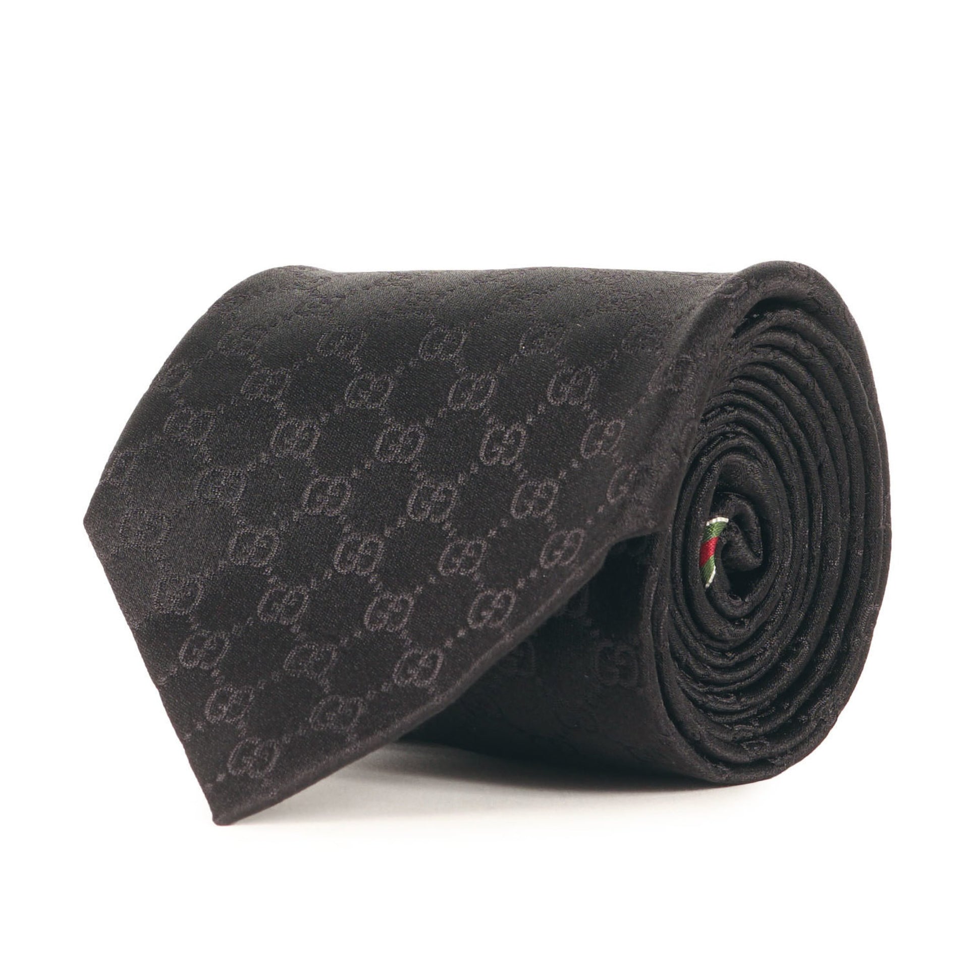 GUCCI GG Monogram Web Stripe Silk Tie, Black, Men\'s, K4616