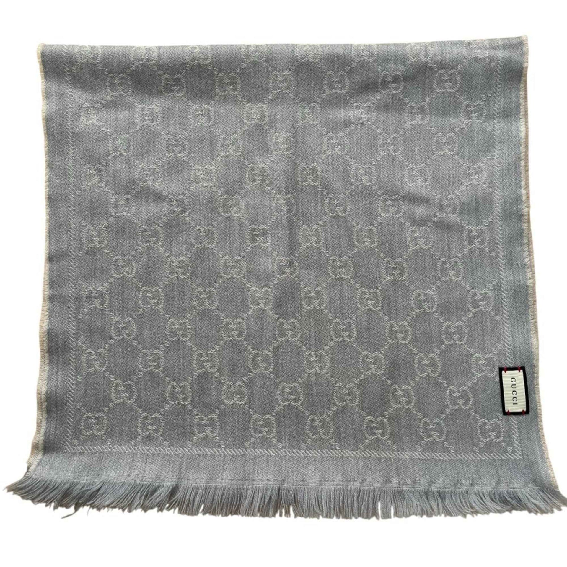 GUCCI GG pattern knit scarf/stole, gray, women\'s
