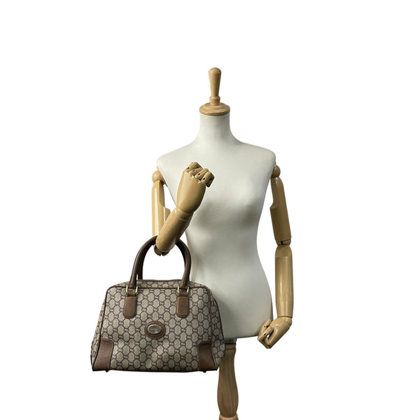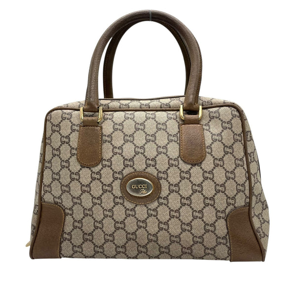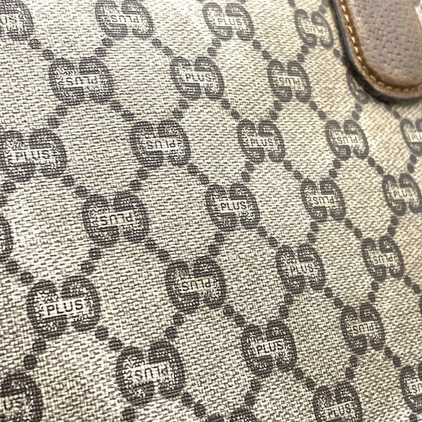 GUCCI GG Plus handbag in gray and beige leather with gold hardware. Vintage Gucci women\'s size A.