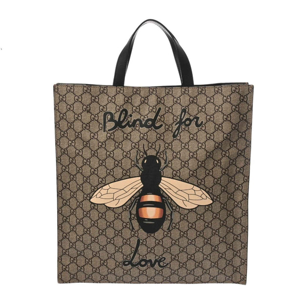 GUCCI GG Supreme 2-Way Tote Bag, Bee Beige, 450950, Women\'s Canvas and Leather Bag