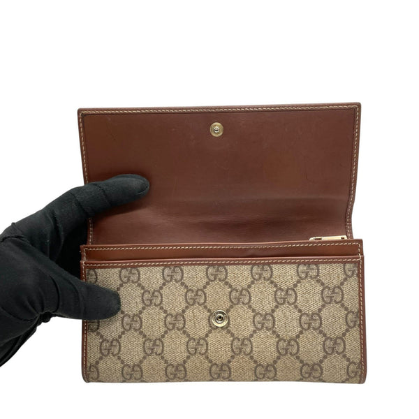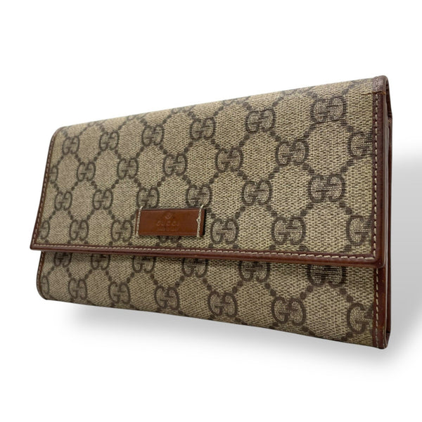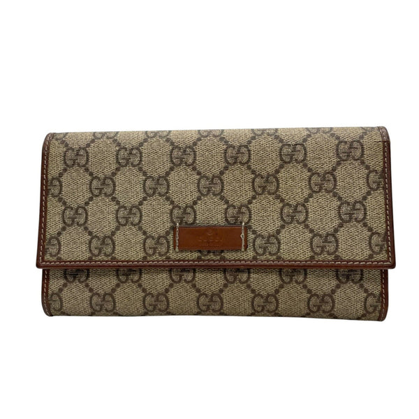 GUCCI GG Supreme Bi-fold Long Wallet Khaki Beige Brown Leather Pattern Logo Men's Women's M5