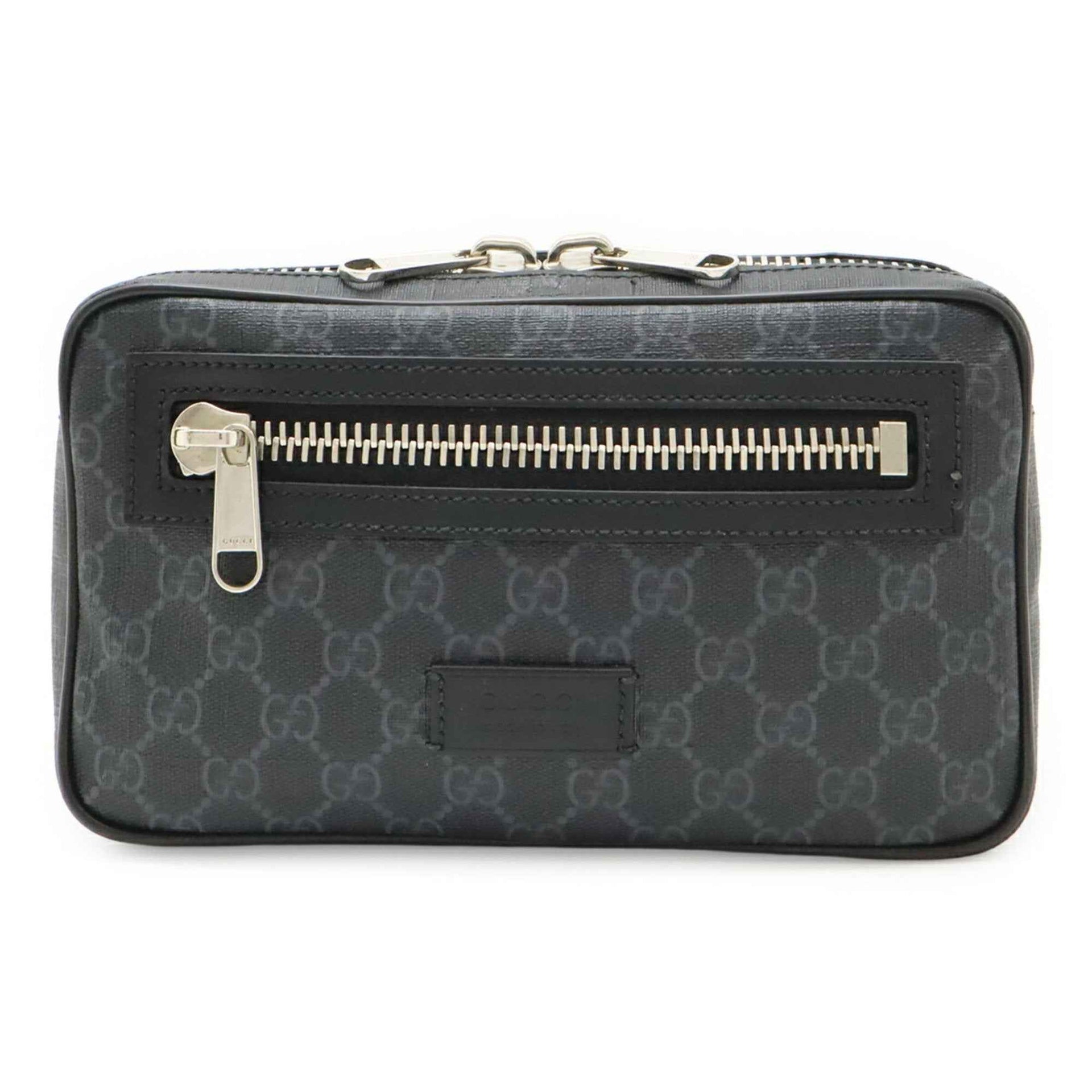 GUCCI GG Supreme Web Line Waist Bag, Body Belt PVC Leather, Black, Dark Gray, 474293