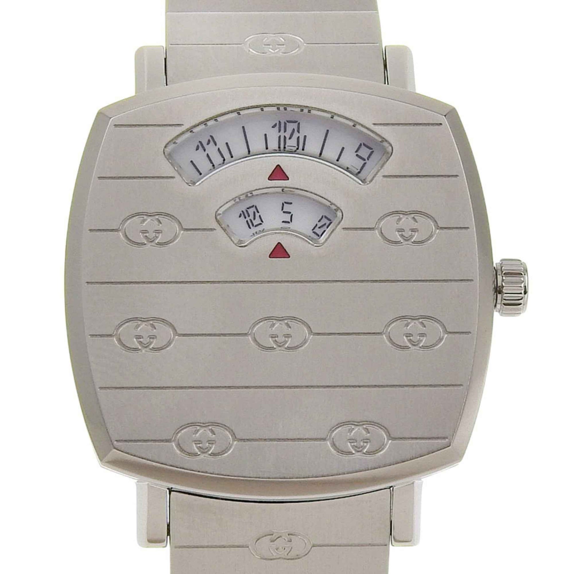 Gucci Grip Watch, Interlocking G, 157.5mm, Stainless Steel, Quartz Movement, Analog Display, White Dial, Women\'s