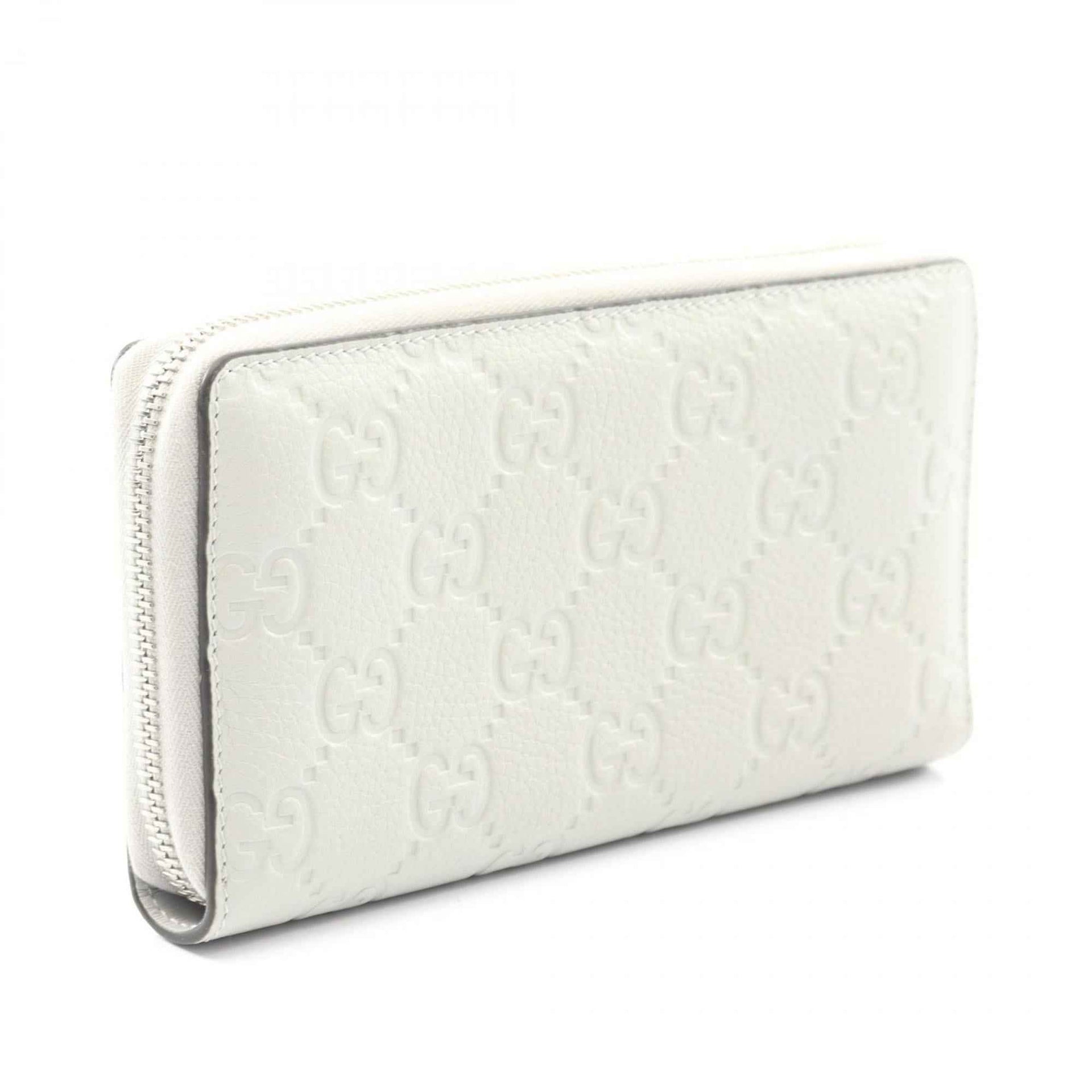 Gucci Imprint Round Long Wallet, Leather, Women\'s, Gray, 835003