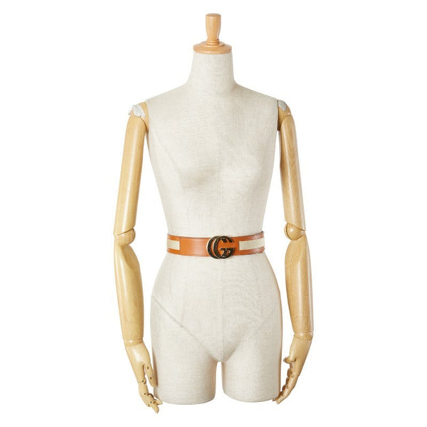 Gucci Interlocking G Belt 74053 in Brown and Beige Leather Canvas for Women