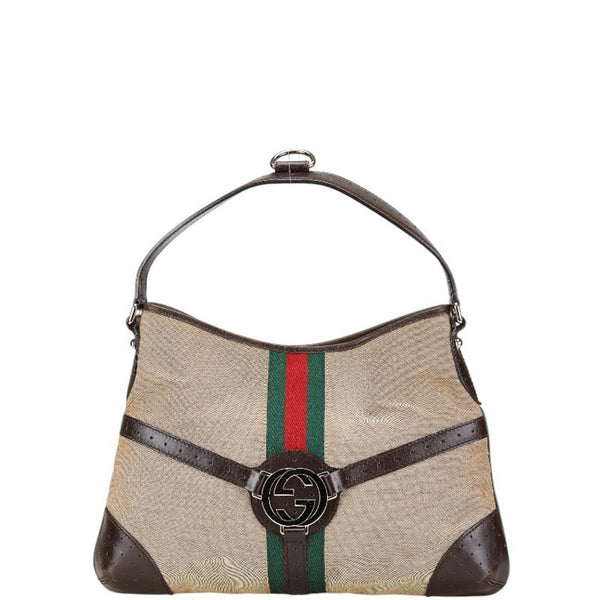 Gucci Interlocking G Sherry Line Bag Handbag 114879 Beige Brown Canvas Leather Women\'s GUCCI