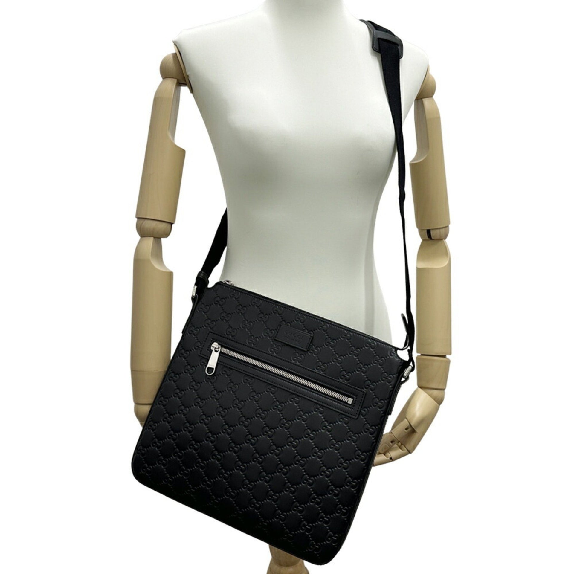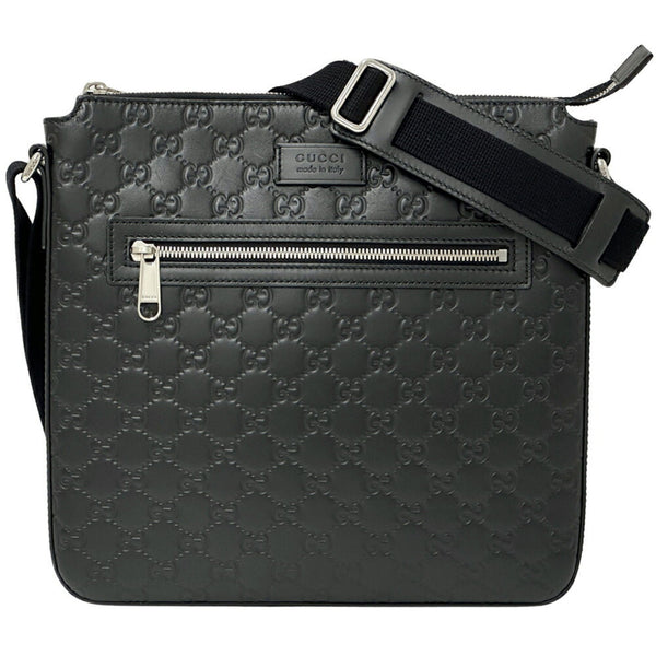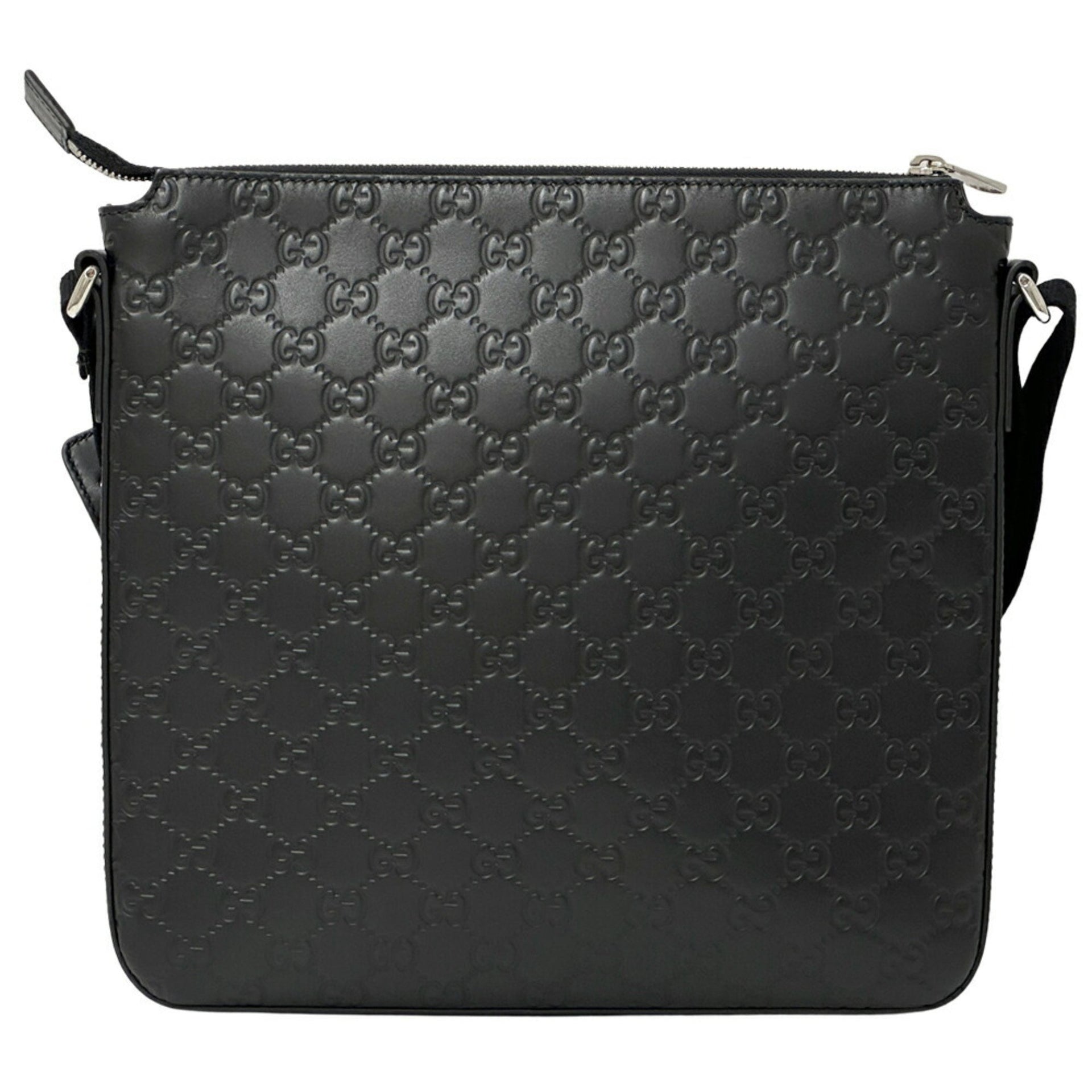 GUCCI Men\'s Guccissima Shoulder Bag Shima Leather Black 406403 Square