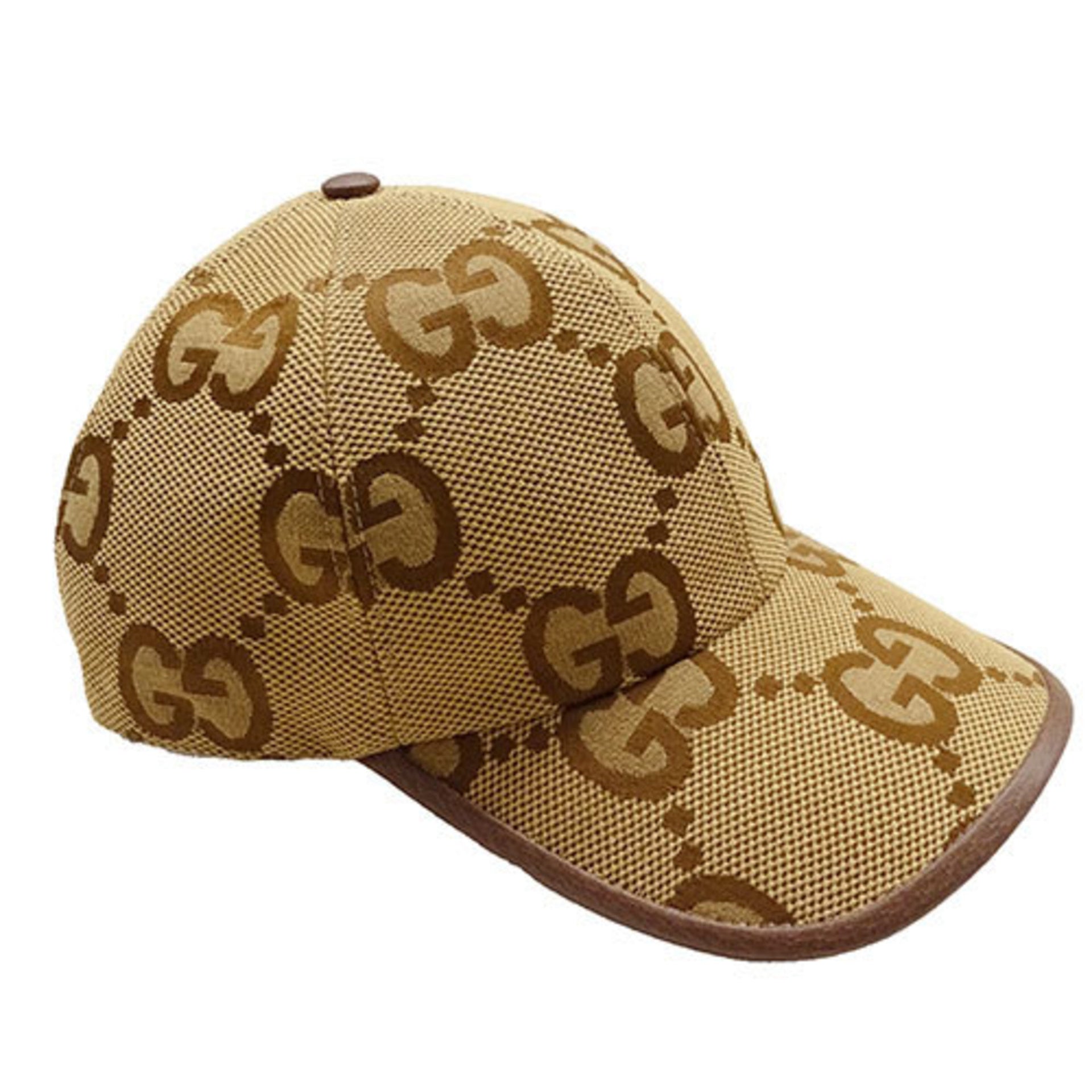 Gucci Men\'s Jumbo GG Canvas Baseball Cap (681264) in Camel, Ebony, and Brown, Size L (58cm), Logo