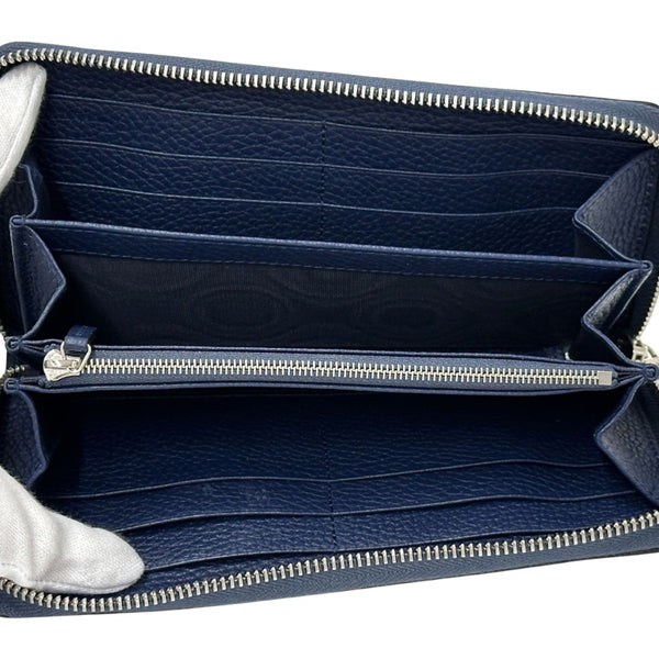 Gucci Men\'s Long Leather Wallet, Blue, 77115, with Round Zipper and Silver Hardware