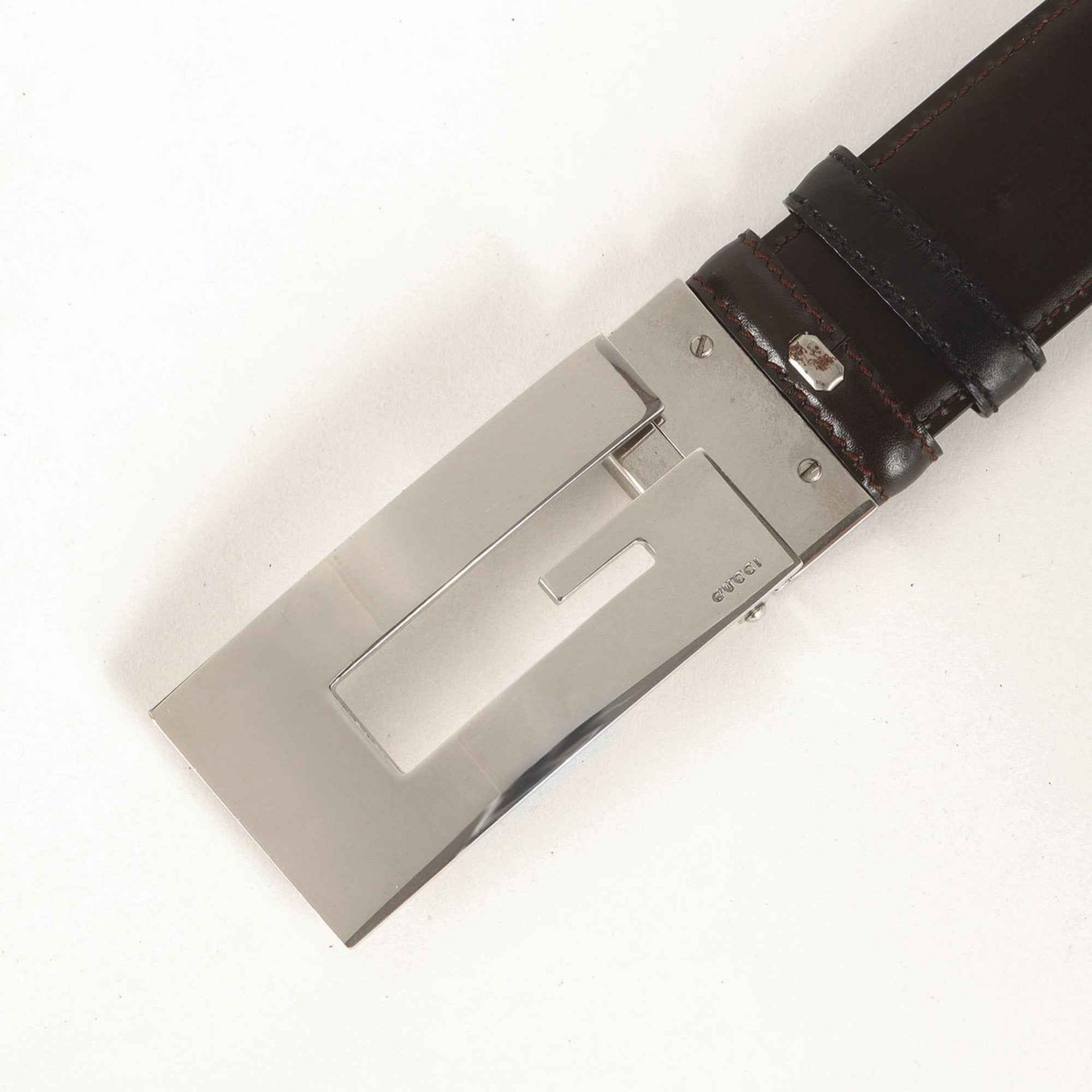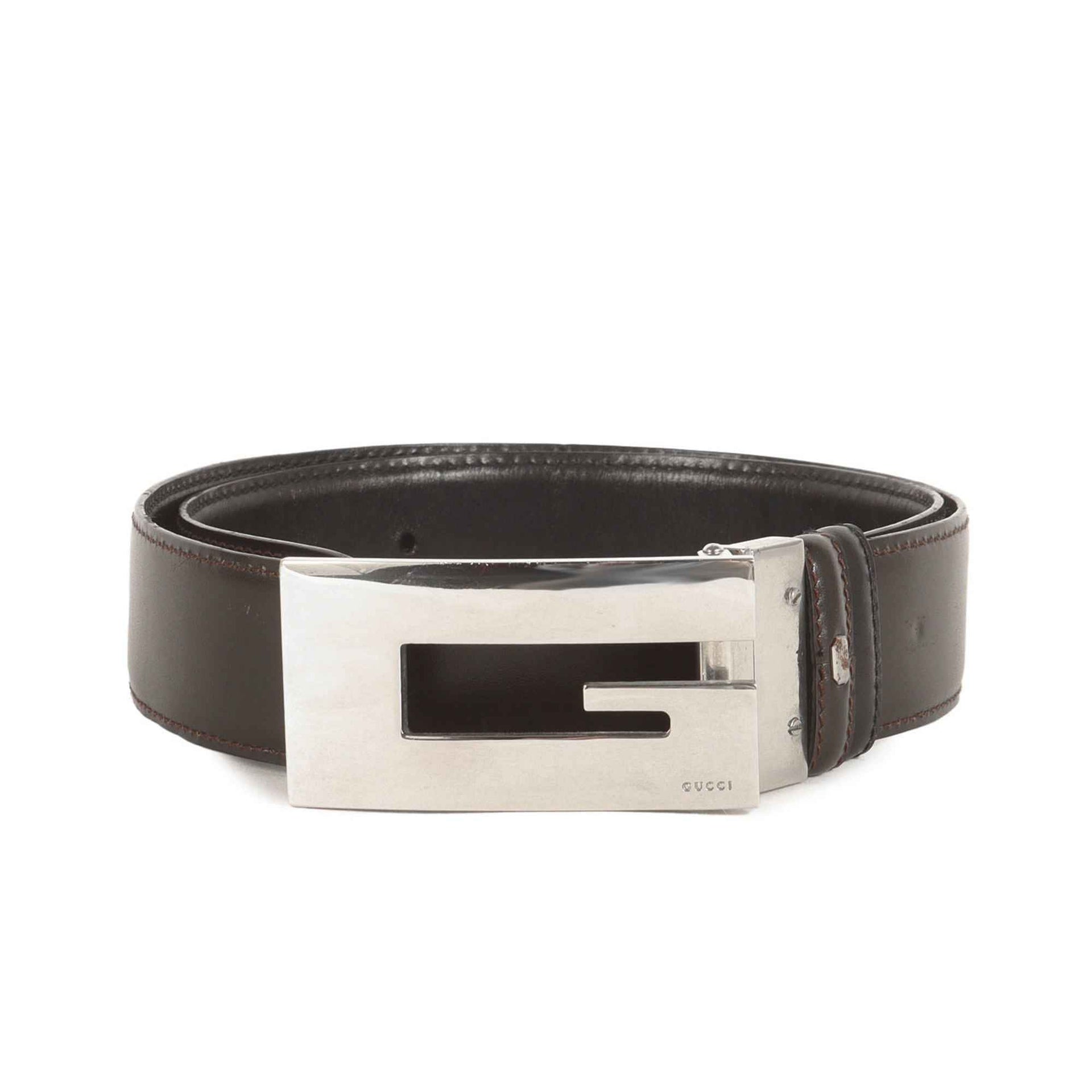 GUCCI Men\'s Reversible Leather Belt with Square G Buckle in Black and Brown