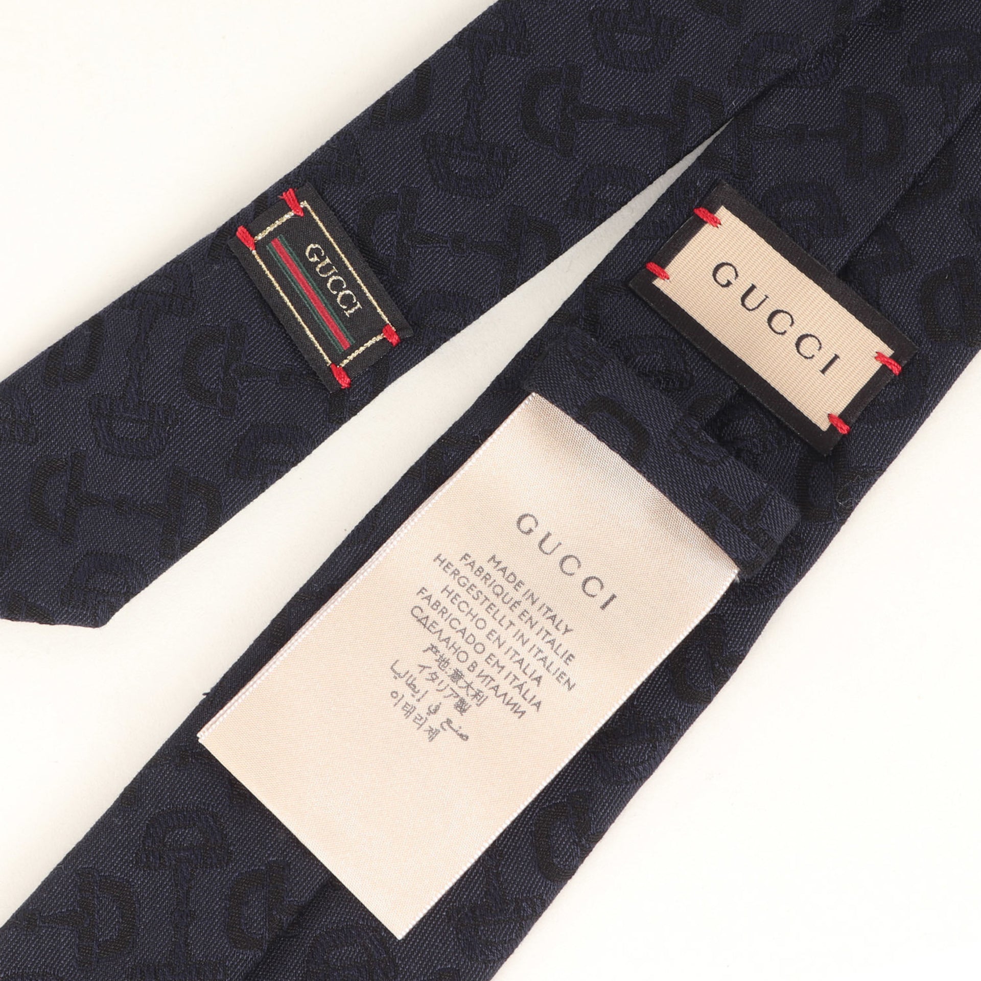 GUCCI Navy Horsebit Jacquard Cotton Wool Tie, Size: 148 x 7cm, 23SS, Men\'s (720997 4EAA3)