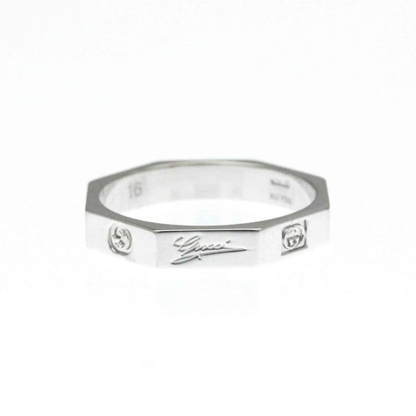 Gucci Octagonal Ring White Gold (18K) Fashion No Stone Band Ring Silver
