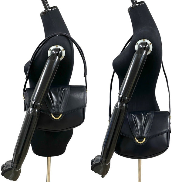 GUCCI Old Gucci Bamboo Hardware Leather Genuine Shoulder Bag Pochette Black 123-1