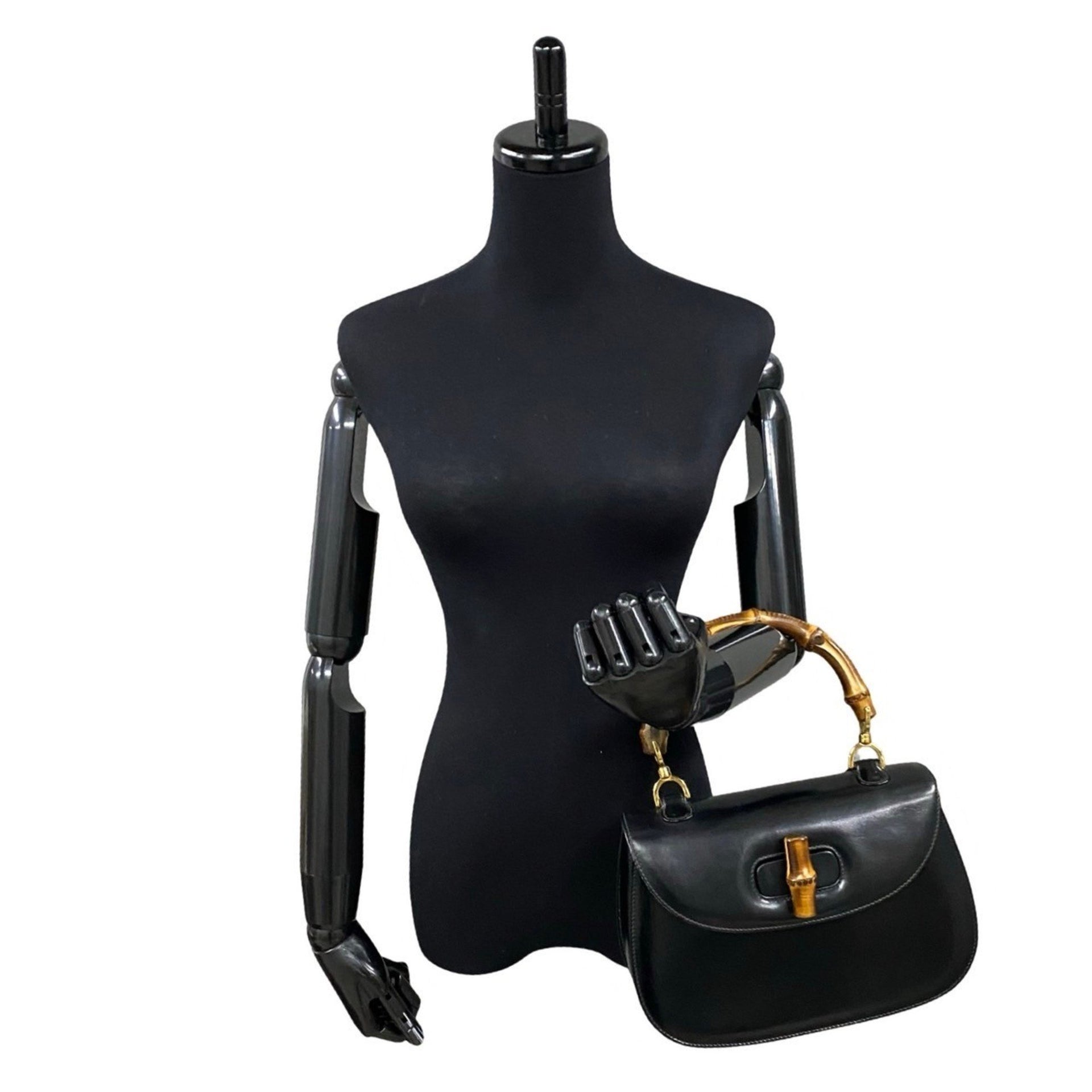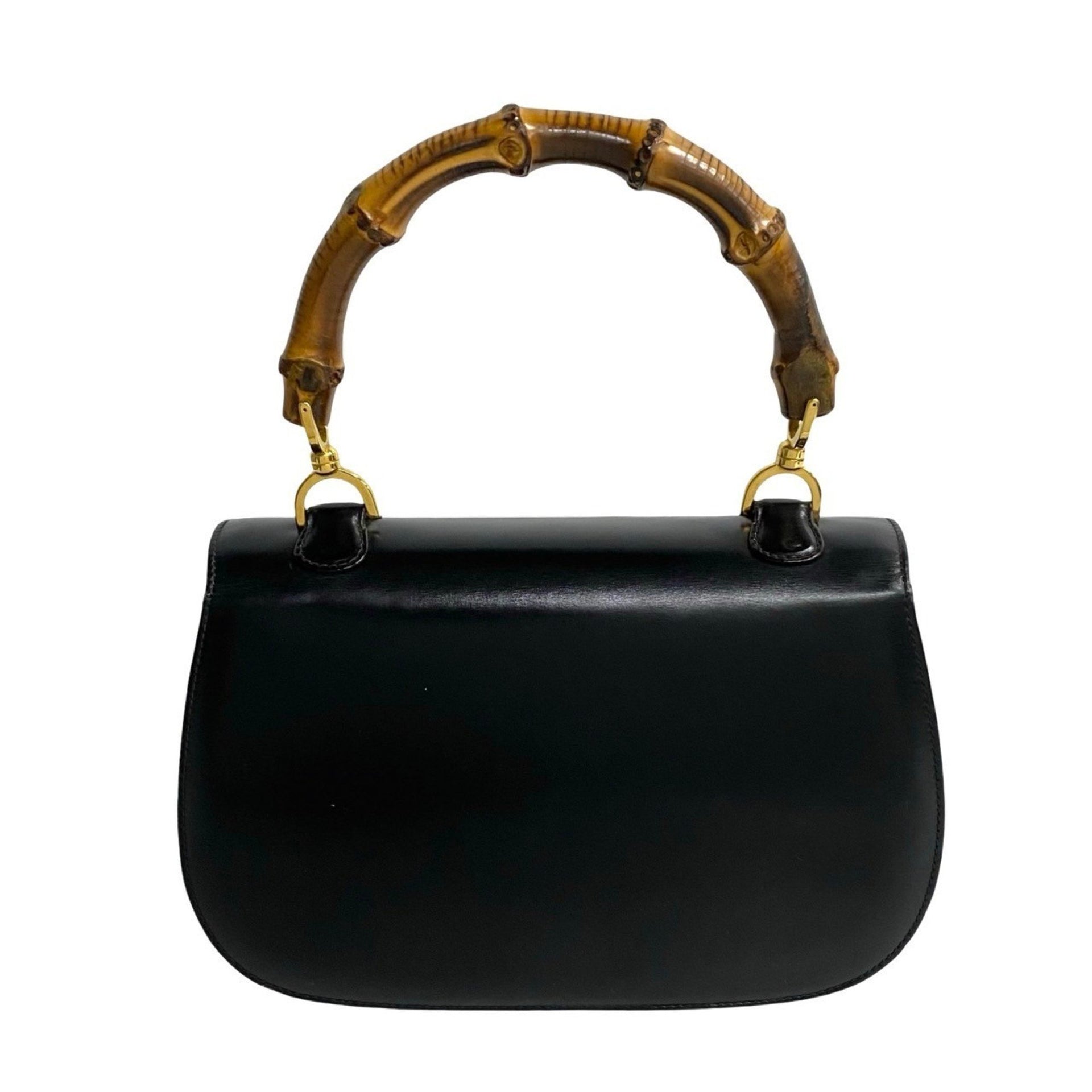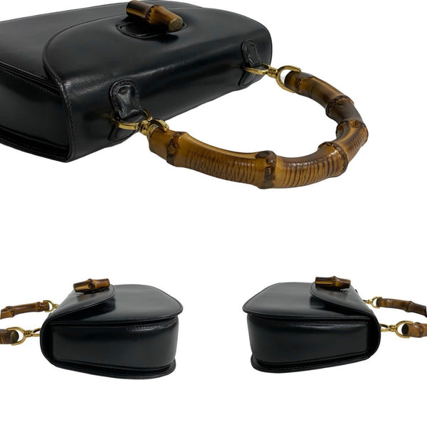 GUCCI Old Gucci Bamboo Turnlock Calfskin Leather Handbag Mini Tote Bag Black 10536
