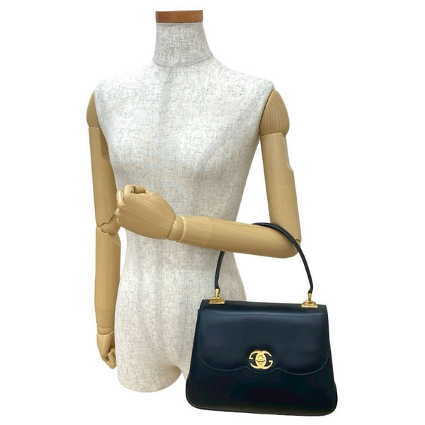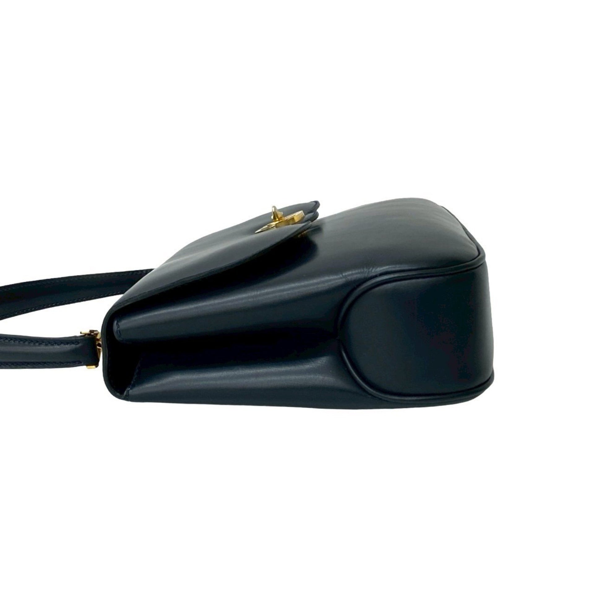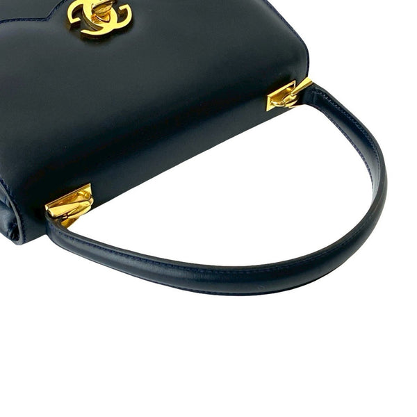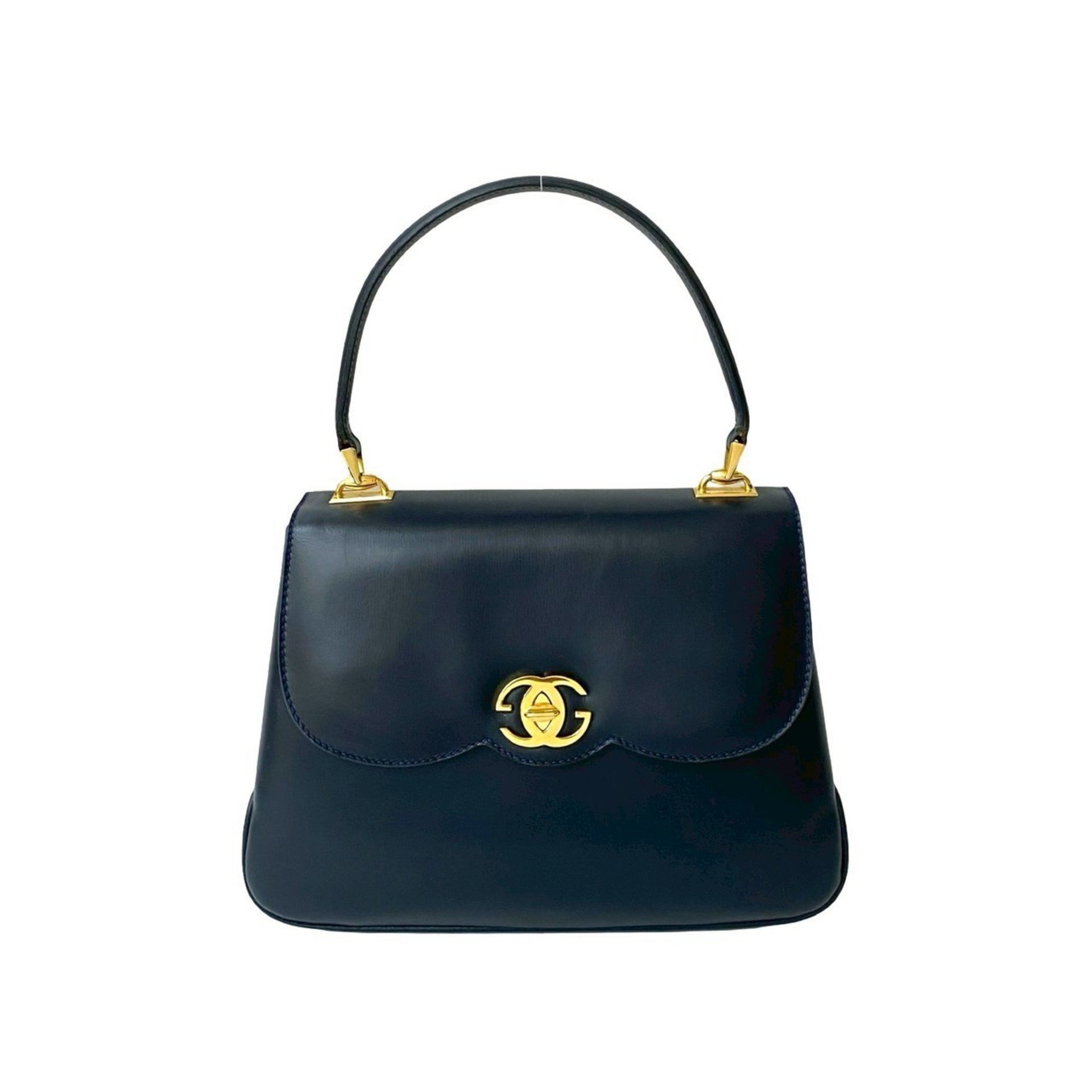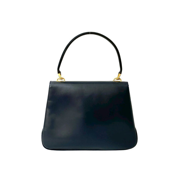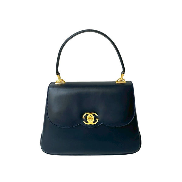 GUCCI Old Gucci GG Logo Hardware Turnlock Leather Genuine Handbag Tote Bag Navy 27372