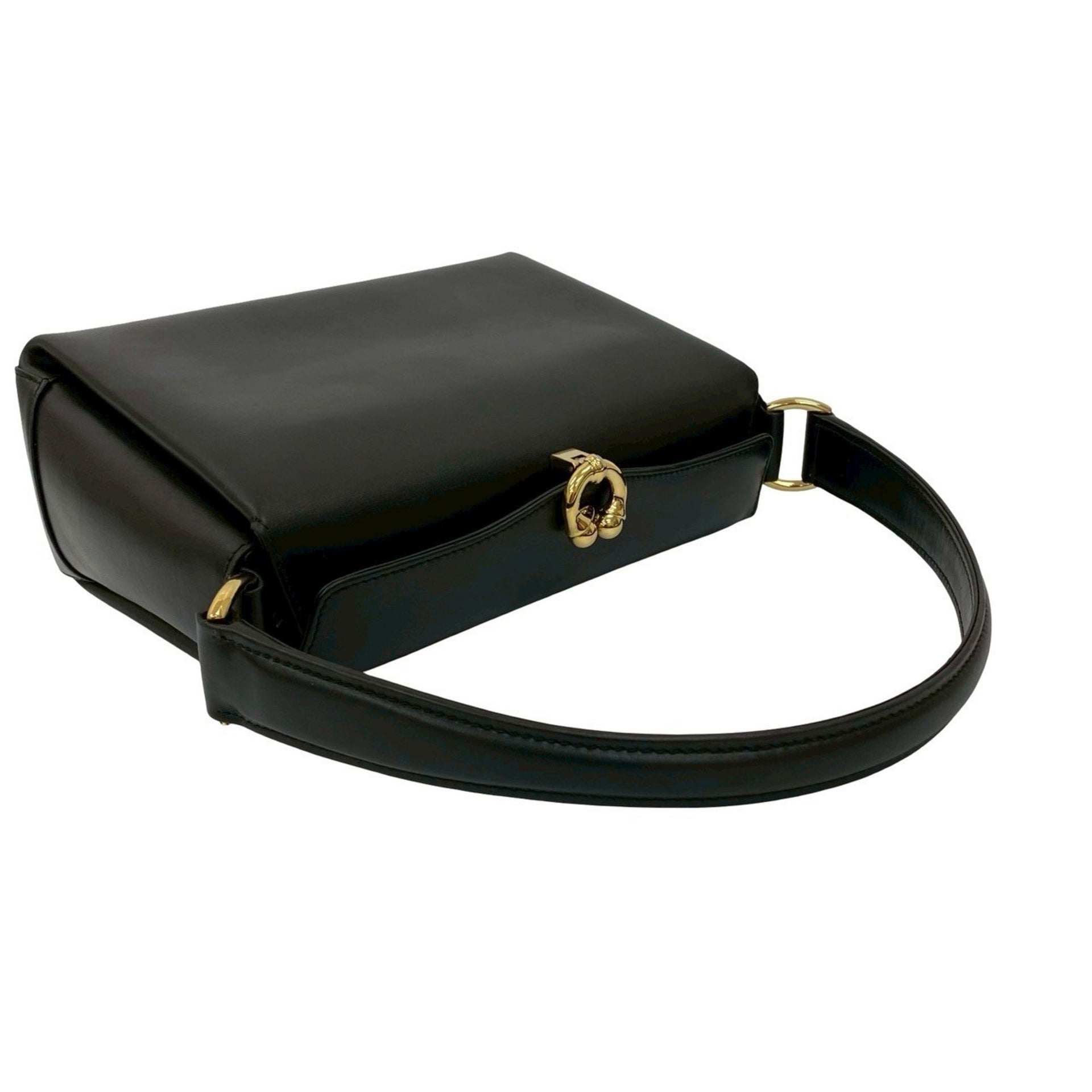 GUCCI Old Gucci Horseshoe Leather Handbag/Mini Tote Bag, Black, 91582
