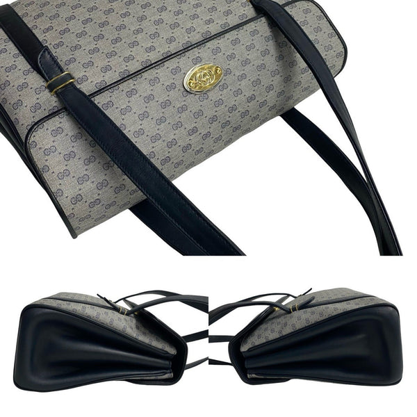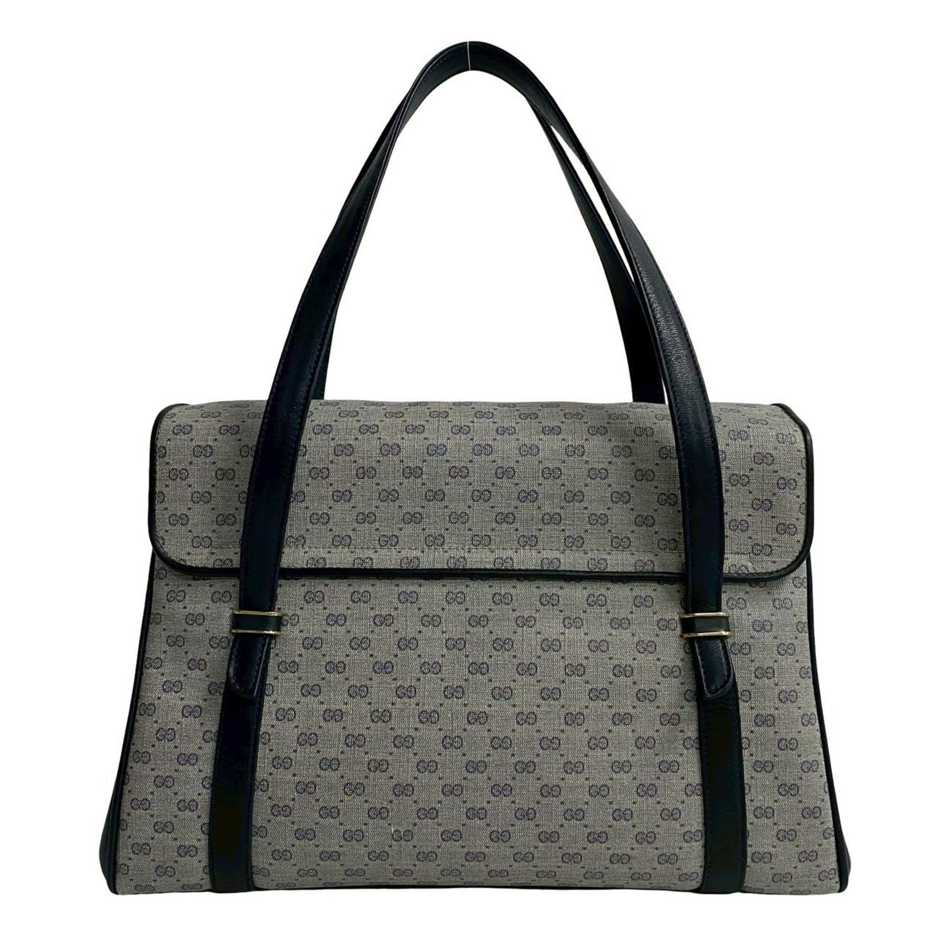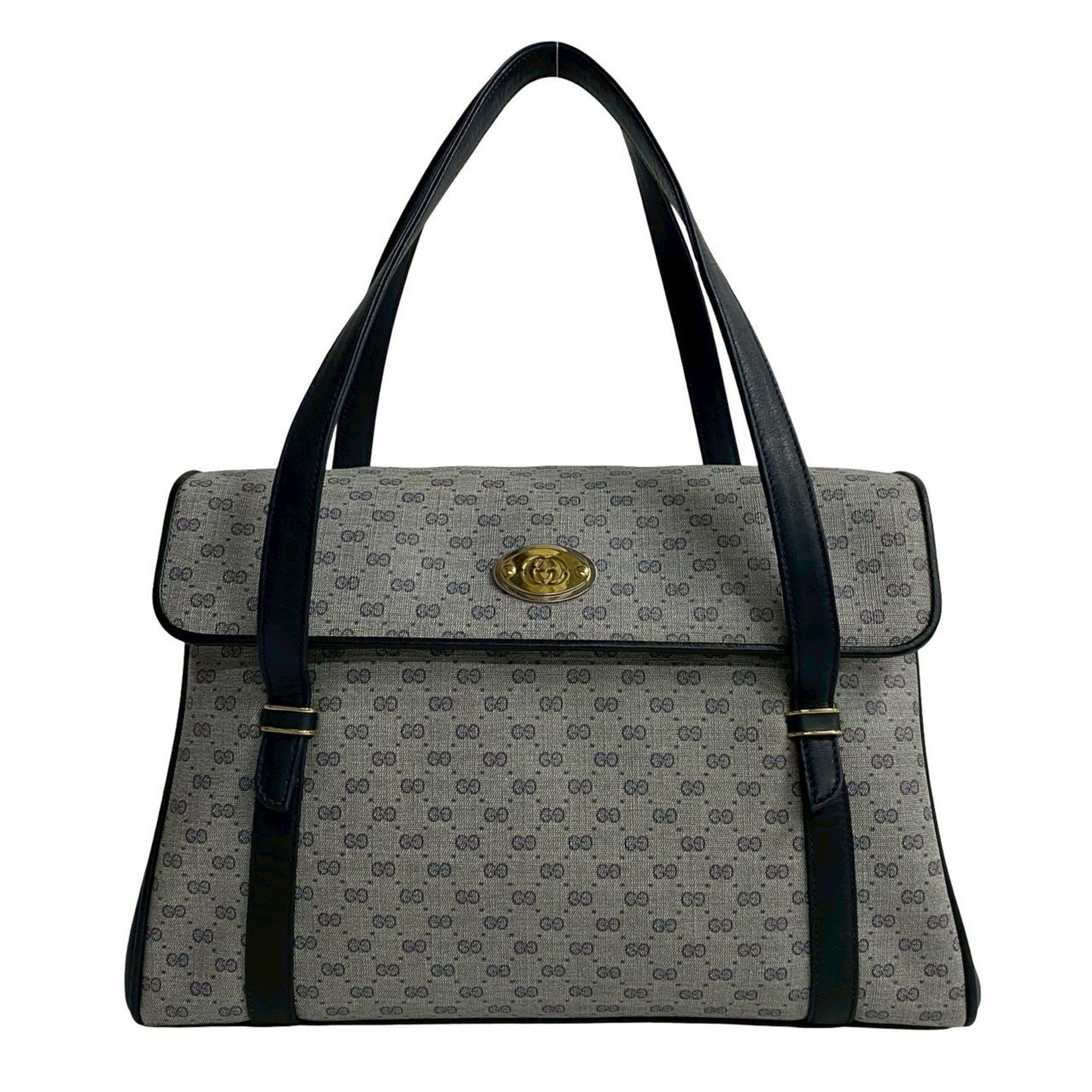 GUCCI Old Gucci Micro GG Logo Hardware Leather Handbag Mini Tote Bag Navy 44050