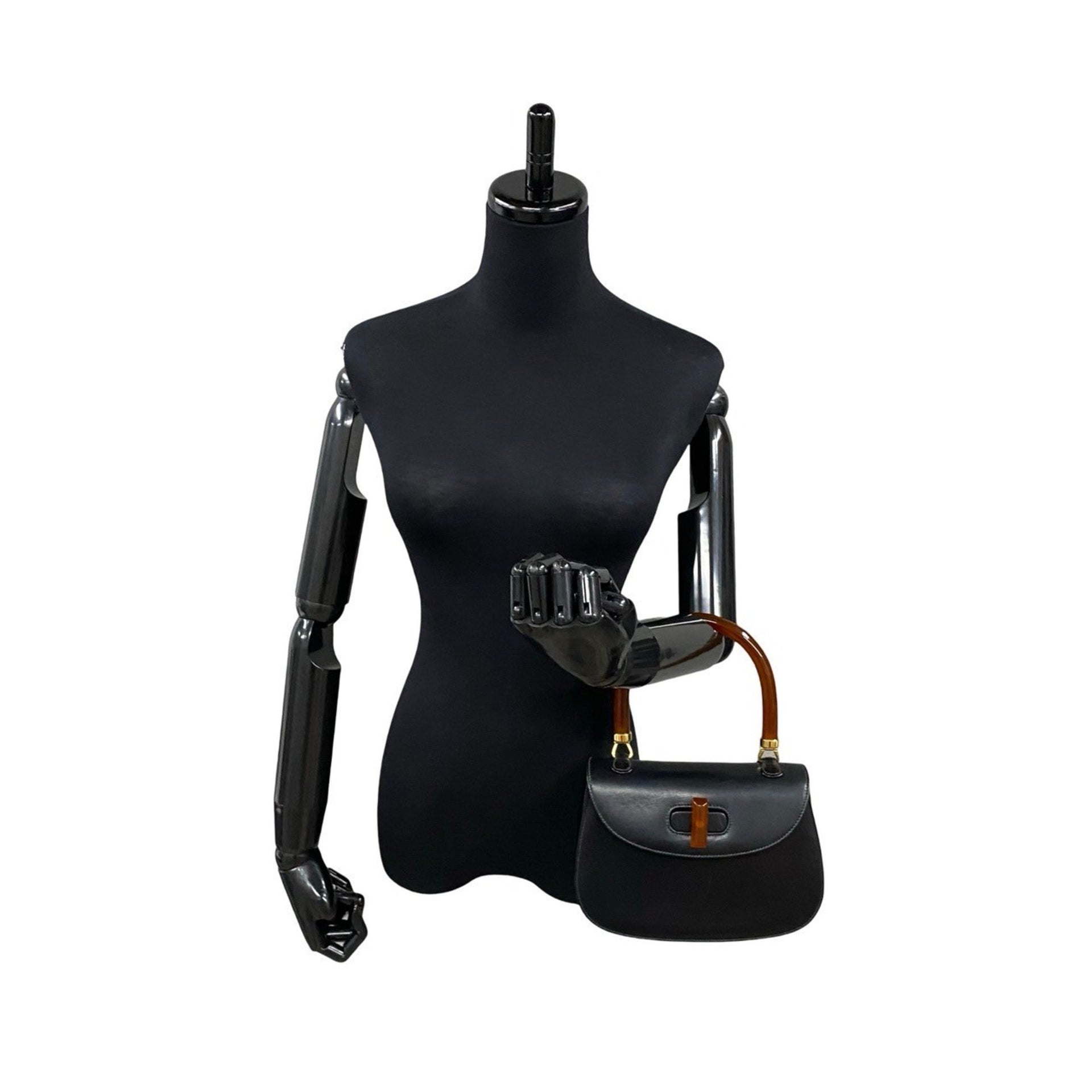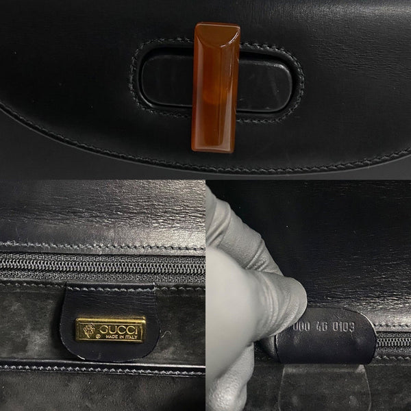 GUCCI Old Gucci Turnlock Leather Genuine Handbag Mini Tote Bag Black 41525
