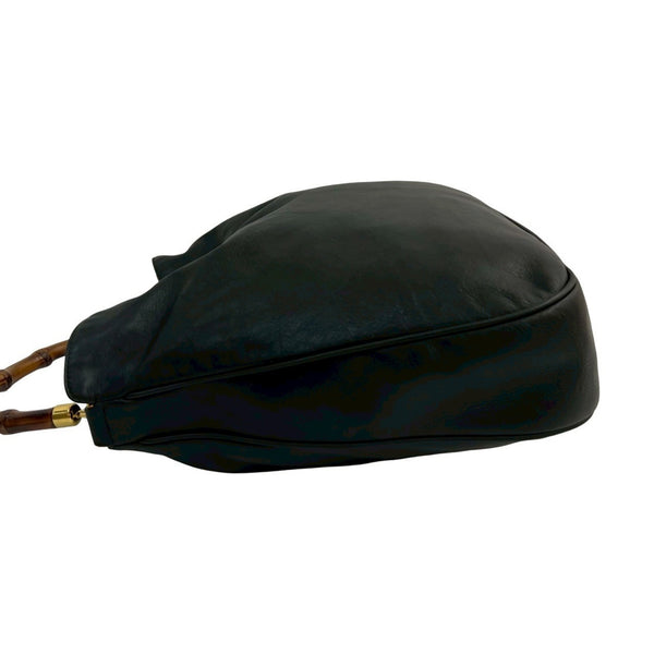GUCCI Old Gucci Vintage Bamboo Leather 2-Way Handbag/Shoulder Bag, Black, 29581