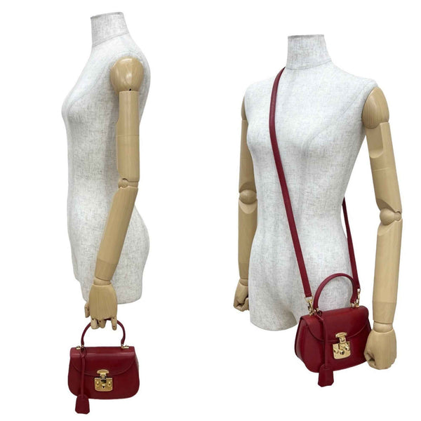 GUCCI Old Gucci Vintage Ladylock Calf Leather 2-Way Handbag/Shoulder Bag, Red, 99942