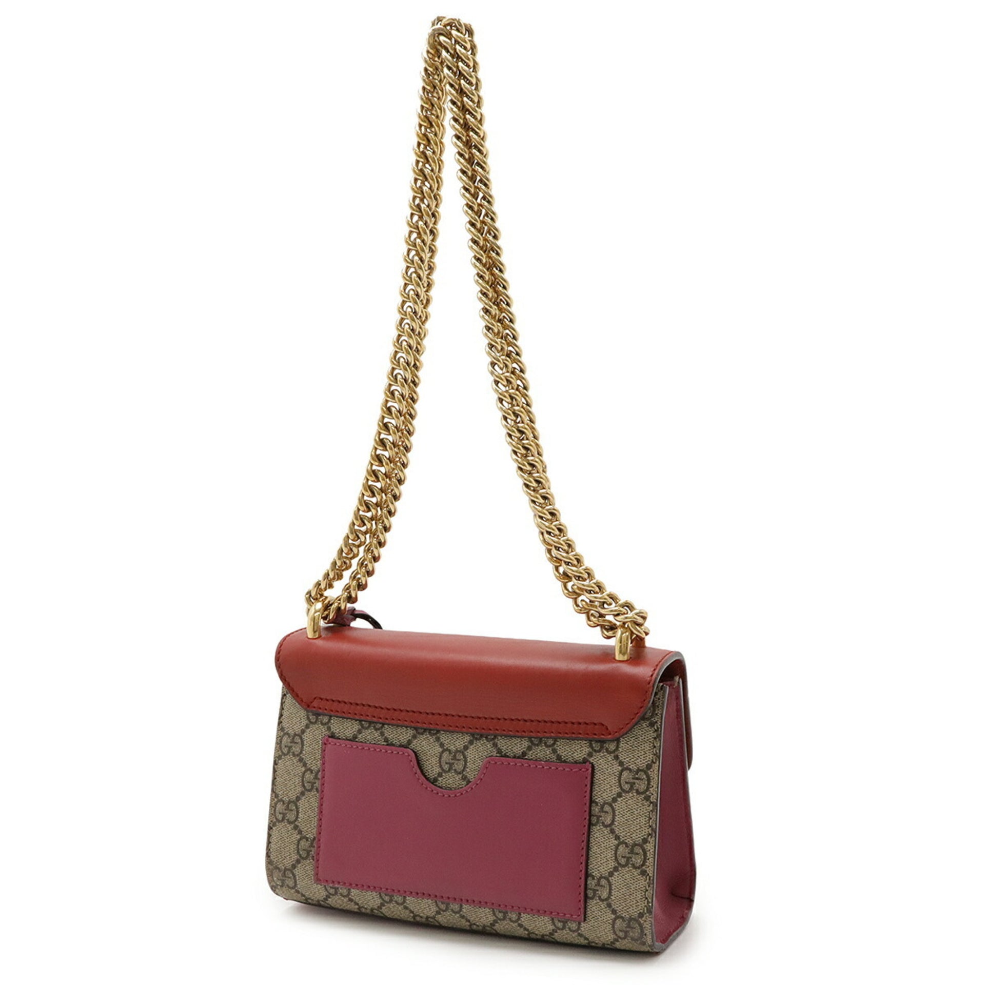 GUCCI Padlock GG Small Supreme Shoulder Bag with Chain Strap, PVC and Leather, Beige, Red, Pink, 409487