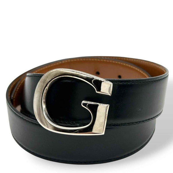 Gucci PX-3 Leather Belt, Black/Brown, G Logo Buckle, Silver Hardware, Two-Tone, 036-2192-0956-5, Genuine