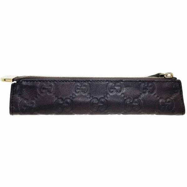 Gucci Shimmer Line Pen Case, Dark Brown Leather, 170780, GUCCI Pouch, MAN-15965
