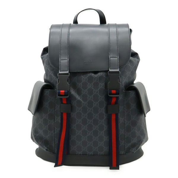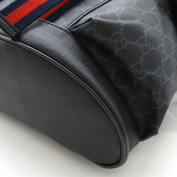 GUCCI Soft GG Supreme Sherry Line Backpack, PVC and Leather, Black Gray, 495563