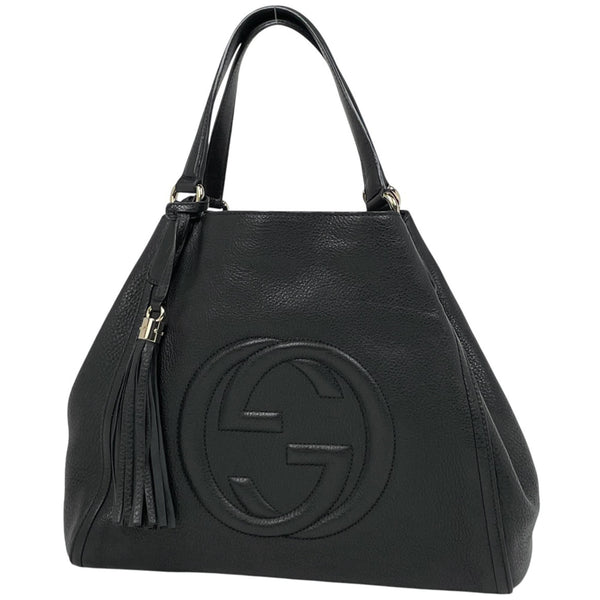 Gucci Soho Fringe Tote Bag with Interlocking G Design, Black Leather, 282309, Women\'s