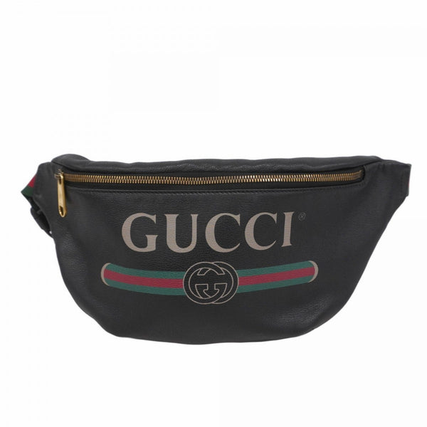 Gucci Waist Bag Sherry Line Print 530112 Leather Black Men's