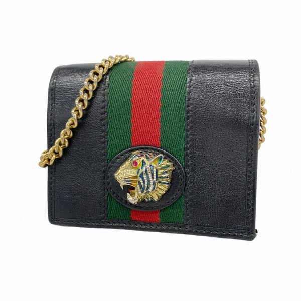 Gucci Wallet Sherry Line Raja 573790 Leather Black Women's