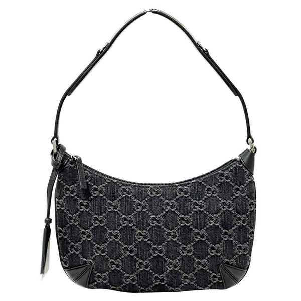 Gucci Women\'s GG Denim Horsebit Shoulder Bag in Black and Grey Leather (774719)