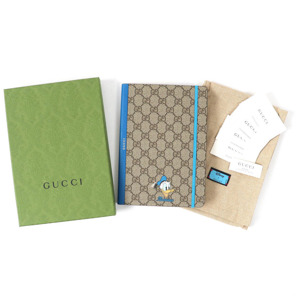 GUCCI x Disney GG Supreme Donald Duck Notebook Paper Stationery in Beige and Blue, Includes Box Dust Bag, Made Italy, Popular Cute for Men Women