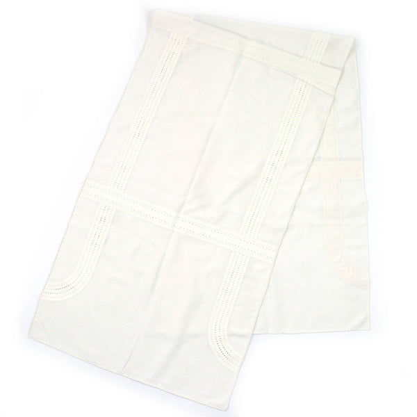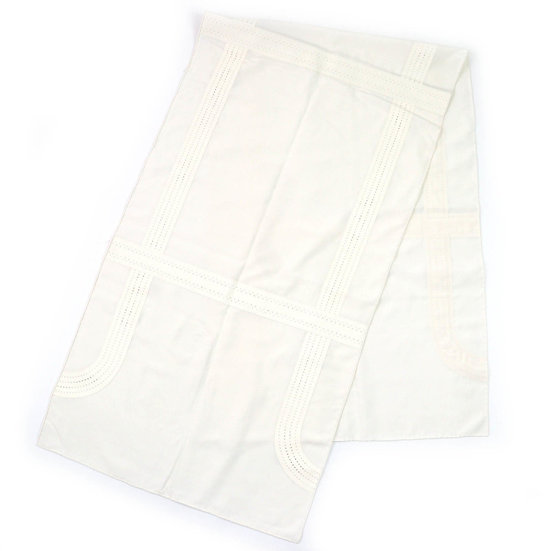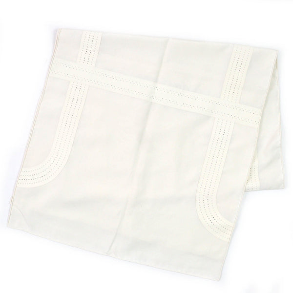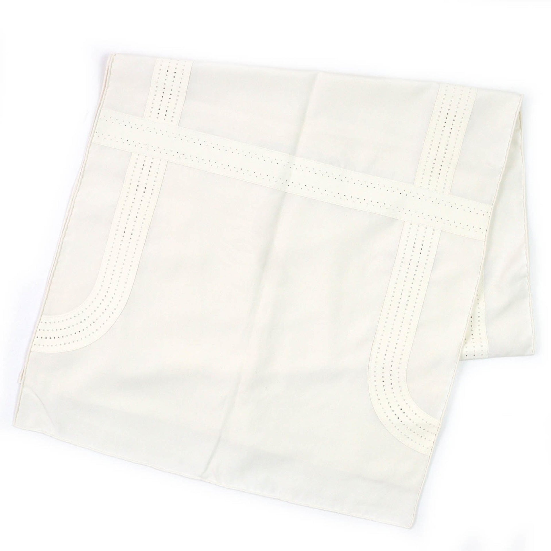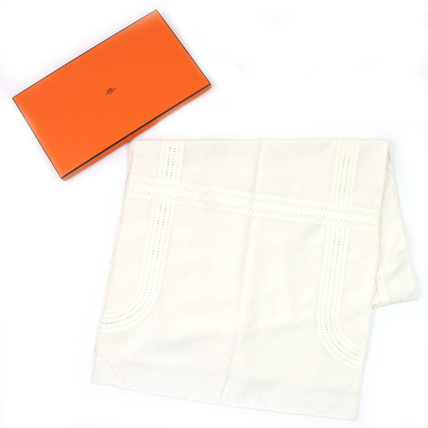 HERMES 100% Silk H Motif Punched Lamb Leather Stole/Shawl in Ivory with Box, Made France, Authentic, Women\'s