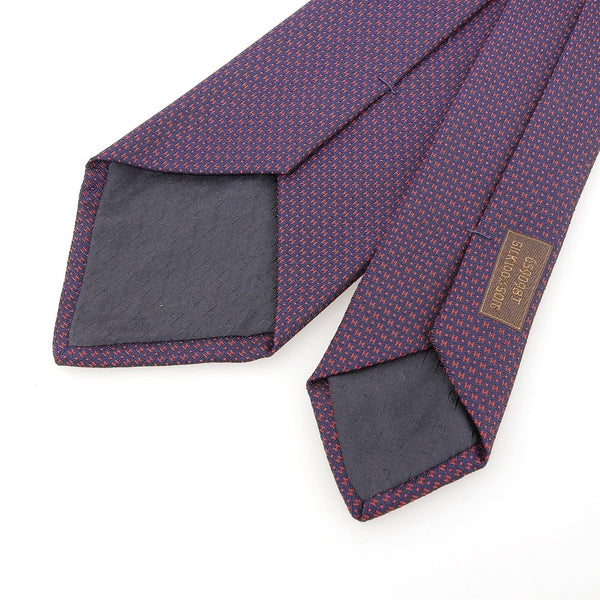 HERMES 659098T 100% Silk H-Print All-Over Tie, Navy and Red, with Box, Made in France, Men\'s