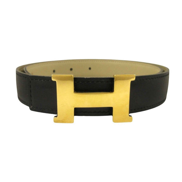 HERMES 90s Constance Reversible Leather Belt (B Stamp, Made in 1998) Black, Light Beige, and Gold. Women\'s.