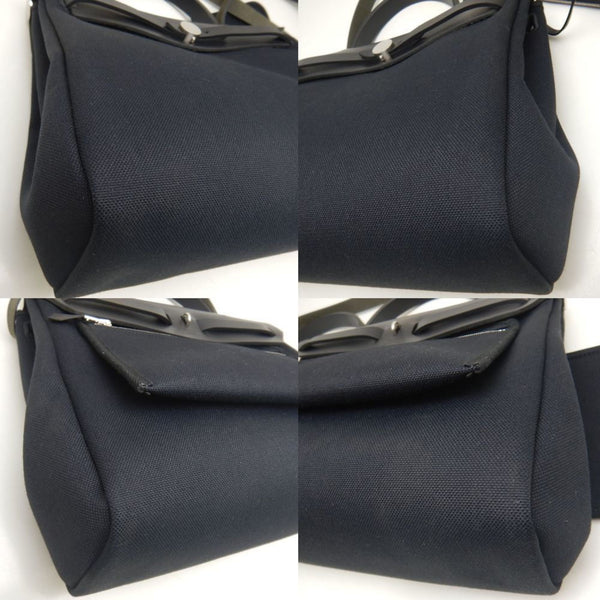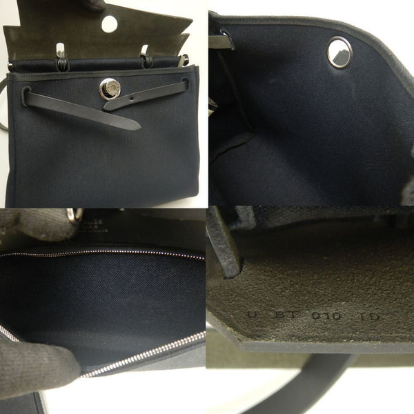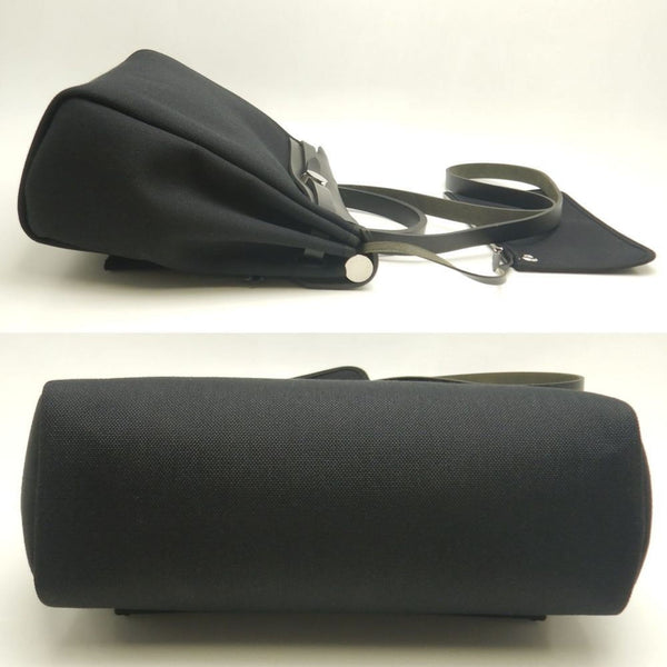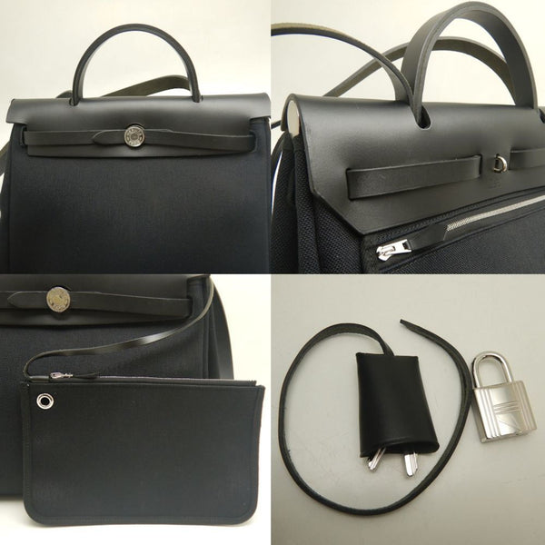 HERMES Airbag Zip PM Handbag in Toile Militaire Canvas and Leather, Black, Women\'s, 253219