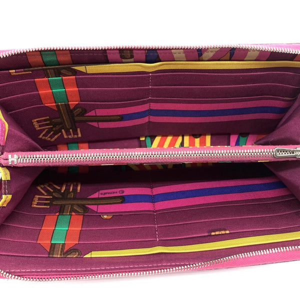 Hermes Azap Long Silk In Round Wallet Veau Epsom □P Stamp Pink Rose Tyrian