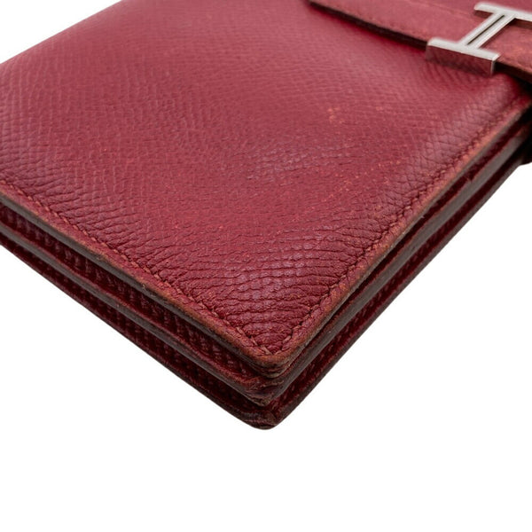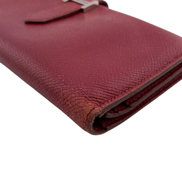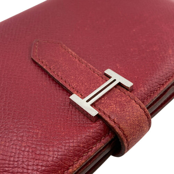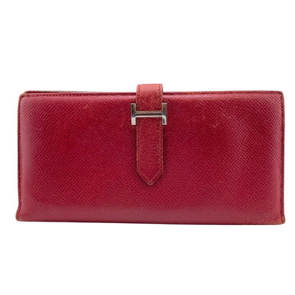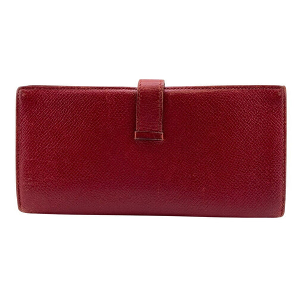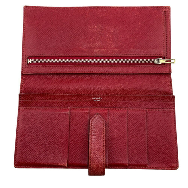 HERMES Bearn Soufflet Long Wallet, Red, Unisex, Z0013370