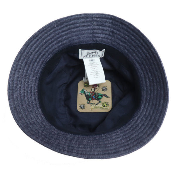 HERMES Bob Eden Serie Button Bucket Hat, Navy, H231039N, SIZE 57, Women\'s