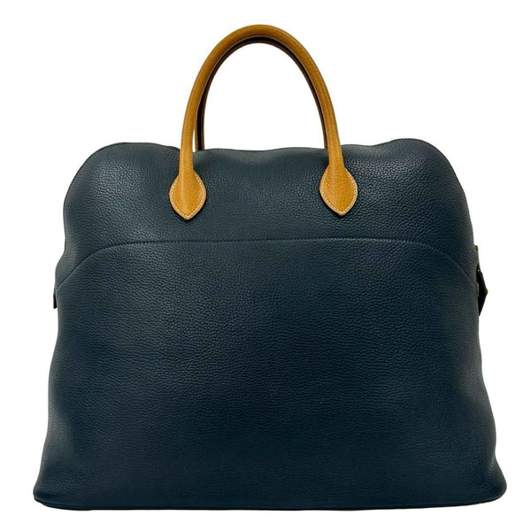 HERMES Bolide 45 Ardennes Leather Handbag, Natural Blue Indigo, 31180, M