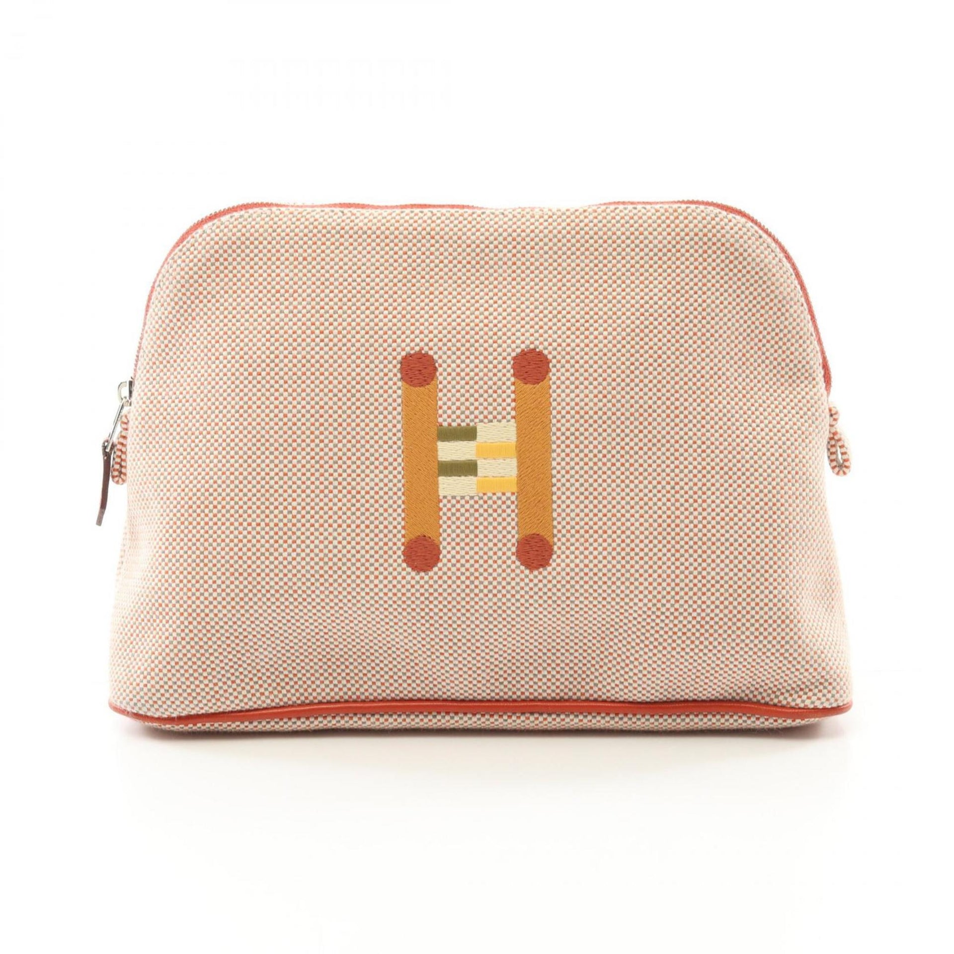 Hermes Bolide Pouch MM Crazy H Canvas Leather Women\'s Red Multicolor