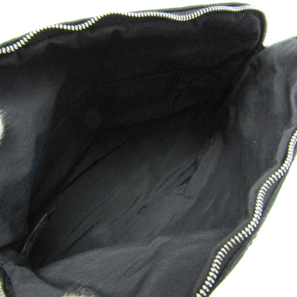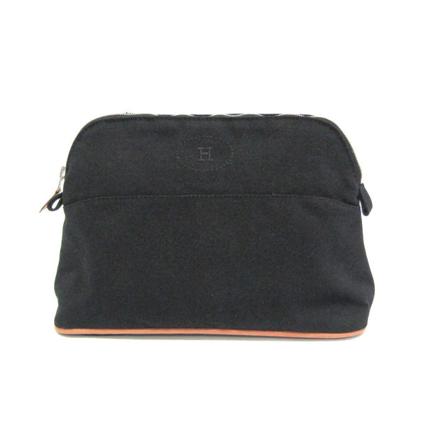 Hermes Bolide Pouch MM Women\'s Cotton,Leather Pouch Black