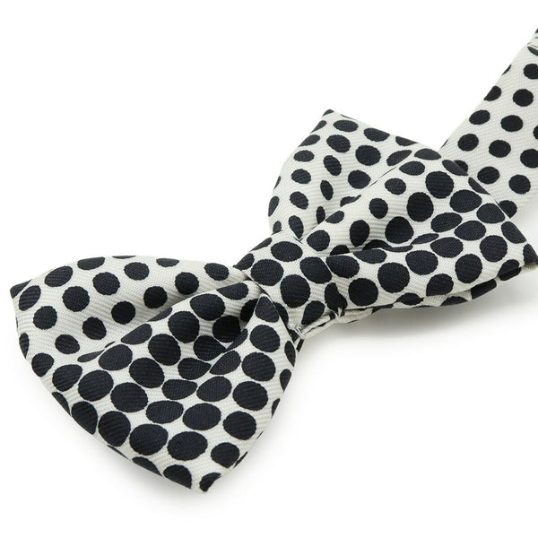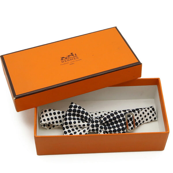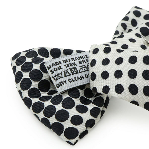 HERMES Bow Tie, Polka Dot Pattern, 100% Silk, White, Black
