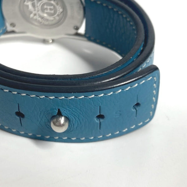 HERMES BR1.210 Barenia Ronde Ladies Watch Stainless Steel Leather Blue Jean Silver
