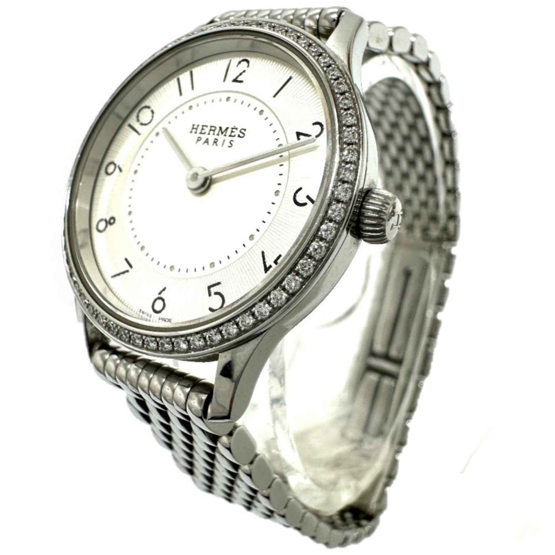 HERMES CA2.130 Slim d\'Hermès Diamond Bezel Quartz Watch, Stainless Steel, Women\'s, Silver